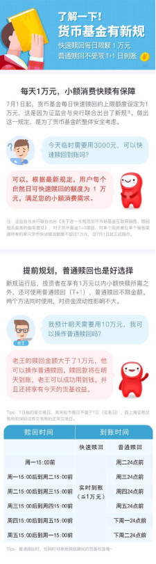 3.贖回快:1萬(wàn)元以內(nèi)贖回實(shí)時(shí)到賬,1萬(wàn)元以上贖回T+1日到賬